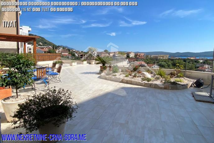 Όμορφο διαμέρισμα 3 υπνοδωματίων προς πώληση στο Tivat. Περιοχή Magina, απόσταση από την προκυμαία και το Πόρτο Μαυροβούνιο 1,3 χλμ. ήσυχο καταπράσινο μέρος στην κορυφή μιας καταπράσινης κοιλάδας.