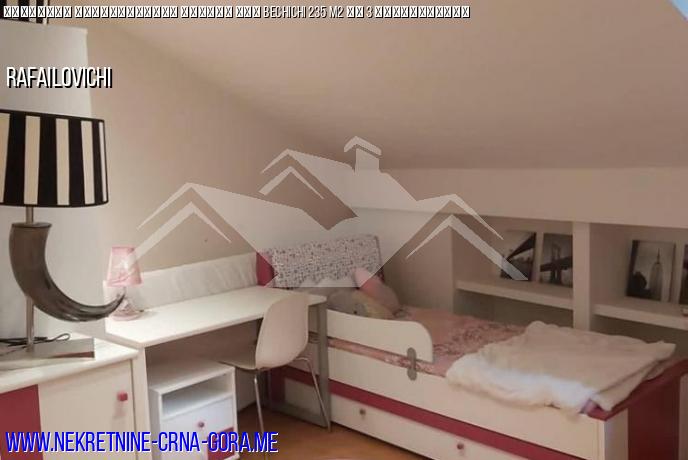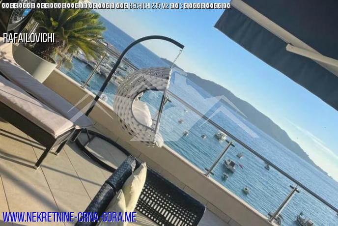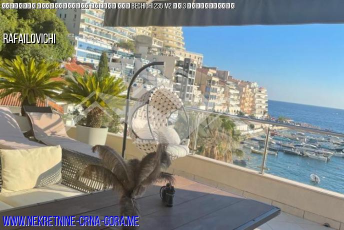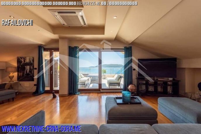 Ρετιρέ με εμβαδόν 235 τετραγωνικών μέτρων με άνετη βεράντα και όμορφη θέα. Η πρώτη γραμμή προς τη θάλασσα, 4 ορόφους. Μεγάλη κουζίνα και σαλόνι, μεγάλο διάδρομο σε όλο το μήκος του διαμερίσματος, πλυσταριό, μπάνιο με ντους. Από το ένα δωμάτιο υπάρχει έξοδος στο μπάνιο με μεγάλη μπανιέρα και το άλλο μπάνιο είναι χωρισμένο και διαθέτει καμπίνα ντους.