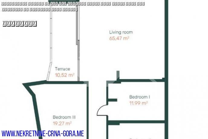 Το διαμέρισμα βρίσκεται στον τέταρτο όροφο του συγκροτήματος και αποτελείται από ένα ευρύχωρο σαλόνι σε συνδυασμό με τραπεζαρία και κουζίνα, 3 υπνοδωμάτια και βεράντα με θέα στην πισίνα, την παλιά πόλη της Μπούντβα και το νησί του Αγίου Νικολάου. Πανοραμικά παράθυρα και ένας στρογγυλεμένος τοίχος του καθιστικού με μοναδική θέα δημιουργούν την εντύπωση ενός χώρου που ρέει ομαλά στη θάλασσα και στον ορίζοντα. Το αρμονικό μοντέρνο σκανδιναβικό εσωτερικό του διαμερίσματος δίνει έμφαση στο πανόραμα της θάλασσας και των βουνών. Το διαμέρισμα είναι εξοπλισμένο με όλα τα απαραίτητα για να εγκατασταθεί αμέσως μετά την αγορά ή να αρχίσει να το νοικιάζει.
