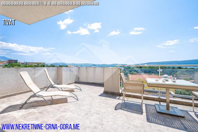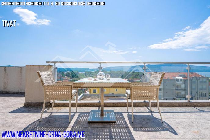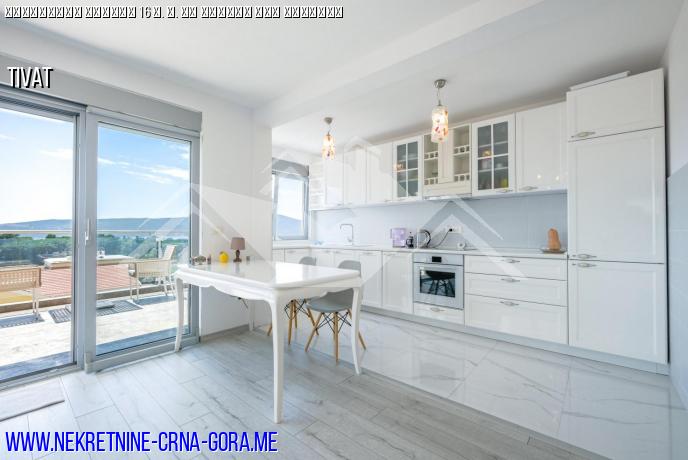 Σας παρουσιάζουμε ένα ευρύχωρο ρετιρέ με 3 υπνοδωμάτια και τζάκι, που βρίσκεται στο κέντρο του Tivat. Αυτό το μοναδικό ακίνητο βρίσκεται σε ένα νέο συγκρότημα εξοπλισμένο με 2 πισίνες, λίγα βήματα από όλες τις απαραίτητες υποδομές.