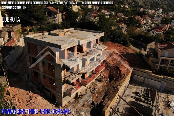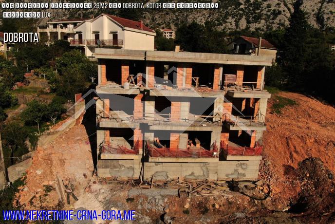 Ένα συγκρότημα κατοικιών υπό κατασκευή στην ελκυστική περιοχή Dobrota στο Κότορ, σε κοντινή απόσταση από τη θάλασσα. Αποτελείται από δύο κτίρια, καθένα από τα οποία έχει τρεις ορόφους και βρίσκεται στο στάδιο της τραχιάς κατασκευής.