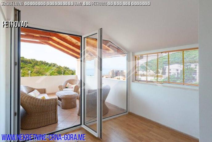 Petrovac, 69m2 View Διαμέρισμα Προς Πώληση, με ένα υπνοδωμάτιο, μπάνιο, σαλόνι-κουζίνα, μεγάλη βεράντα με θέα στη θάλασσα.