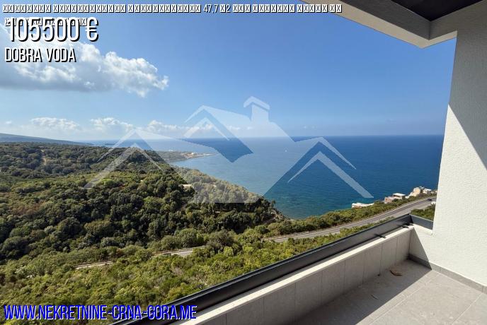 Διαμερίσματα συνολικής επιφάνειας 47,7 τετραγωνικών μέτρων, εκ των οποίων τα 42,5 μ2 καταλαμβάνονται από κατοικημένη περιοχή, πωλούνται στη γοητευτική παραθεριστική πόλη Dobra Voda. Βρίσκονται στο δεύτερο επίπεδο ενός επταώροφου κτηρίου, αυτά τα διαμερίσματα αποτελούν μέρος ενός συγκροτήματος κατοικιών που προσφέρει ανέσεις όπως πισίνα 15 επί 5 μέτρων, Λιφτ του σκι, κεντρική παροχή νερού και χώρους στάθμευσης.