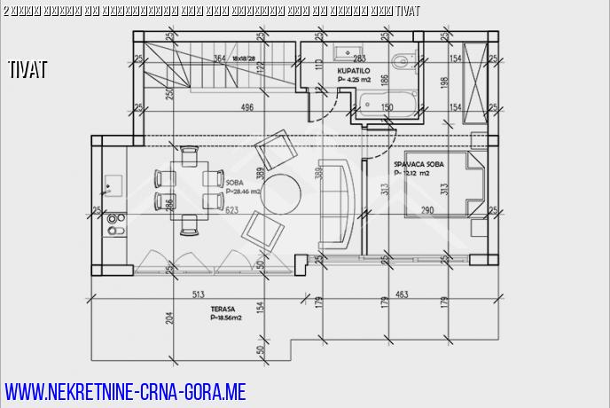 Δύο δίδυμες βίλες προσφέρονται προς πώληση 10 λεπτά από το κέντρο του Tivat. Μια βίλα βρίσκεται στο τελικό στάδιο, τελειώνοντας την εσωτερική διακόσμηση. Το δεύτερο είναι στο αρχικό στάδιο, προετοιμασία για το ίδρυμα.