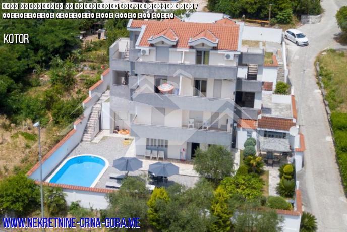 Υπάρχουν συνολικά 7 διαμερίσματα με περίπου. 400 τμ εσωτερικού χώρου και 450 τμ γης. Υπάρχει μια πισίνα για τους επισκέπτες.