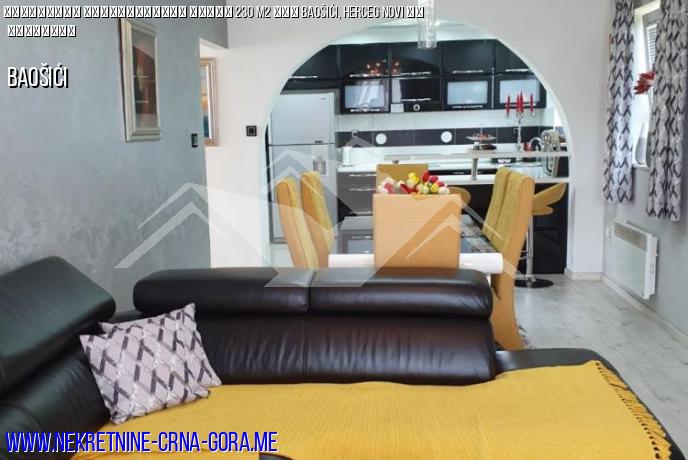 Αυτό το πολυτελώς επιπλωμένο τριώροφο σπίτι βρίσκεται στην πιο ελκυστική τοποθεσία, μόλις λίγα μέτρα από τη θάλασσα, με απίστευτη θέα στην Αδριατική Θάλασσα, το Tivat και το Lovcen. Είναι ιδανικό τόσο για μόνιμη κατοικία όσο και για ενοικίαση.