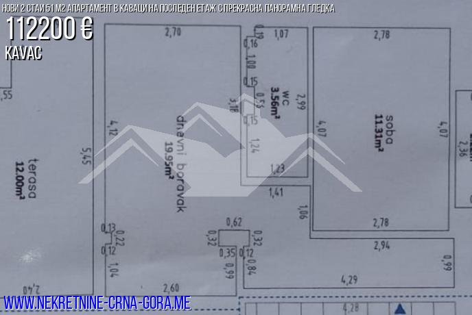 Спалня - 11 м2, зала и кухня 20 02, тераса 12 02, баня 4 02, коридор.