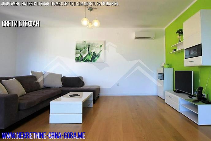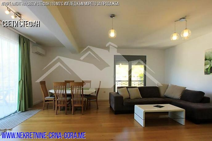 Апартаментът се отличава с модерен дизайн и първокласно покритие. С просторна всекидневна, големи прозорци и балкон с прекрасна гледка към Свети Стефан можете да се отпуснете и да се отпуснете.