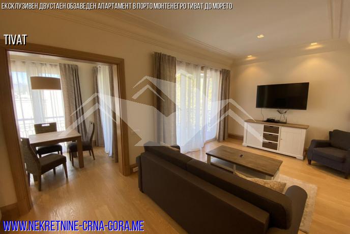 Изключителен двустаен, напълно обзаведен апартамент на 4 етаж. Апартаментът е 80 м2 (68 м2 апартамент + 12 м2 тераса) и се състои от една спалня, отворена всекидневна с трапезария и отделна кухня, една баня и тераса с изглед към морето. Сградата " 0 " е една от най-желаните в Порто Черна гора заради стила и качеството на строителството. Порто Черна гора е не само луксозен жилищен комплекс, но и първокласно яхтено пристанище, което привлича най — големите яхти от цял свят. Проектът представлява удобен за живеене и отдих мини-град с развита инфраструктура, включваща хотел "Регент", ресторанти, приятни барове, спортен комплекс, галерии, бутици на световни марки.