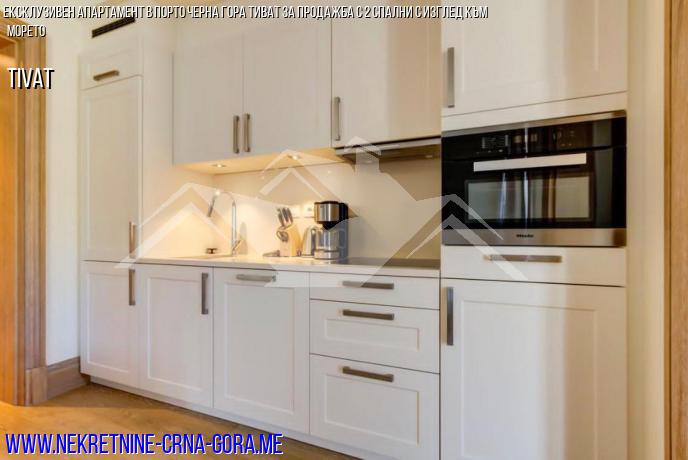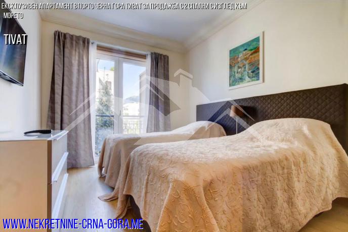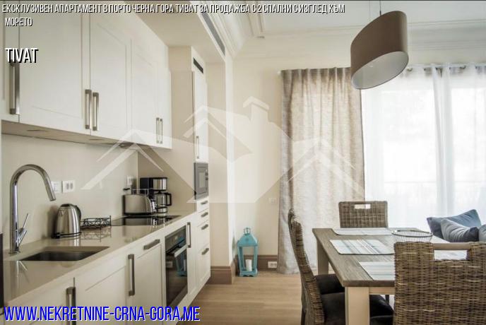 Продава се ексклузивен апартамент с площ от 107 м2: 2 спални, просторен хол, съчетан с трапезария, отделна кухня, една баня, отделна тоалетна и тераса с изглед към морето, 1 етаж. Сграда 0 е една от най-желаните в Порто Черна Гора поради своя стил и качество на строителство.