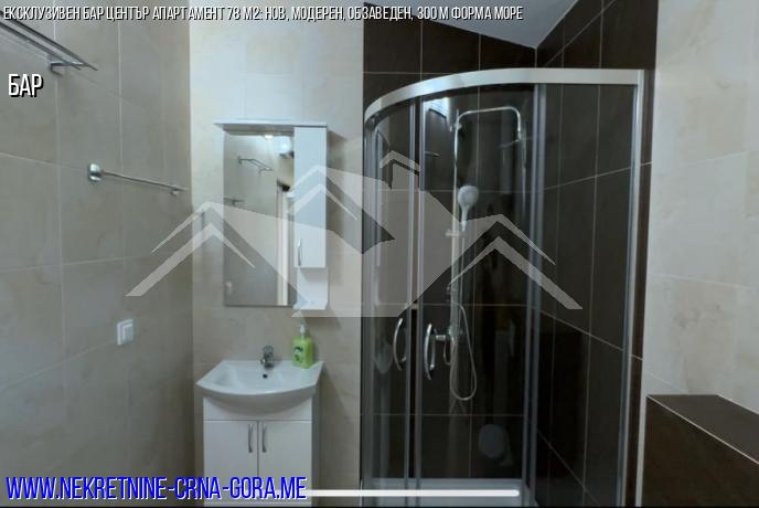 В центъра на града Бар продава апартамент в нова къща. Апартаментите са разположени в малка триетажна сграда-на всеки етаж има 1 апартамент. Апартаментът се състои от голяма тераса, коридор, 2 спални, отделна кухня, хол и баня.
