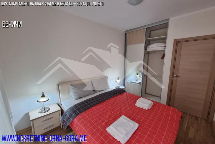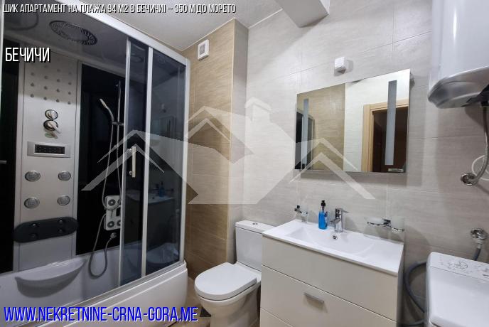 В Бечичи на Будванската Ривиера в модерна жилищна сграда се продава апартамент 94 22 С 2 спални, 2 бани и тераси.