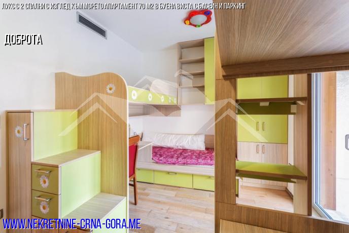 Другата спалня е оборудвана за детска стая, от нея също има достъп до терасата.