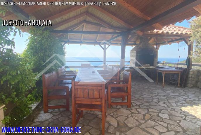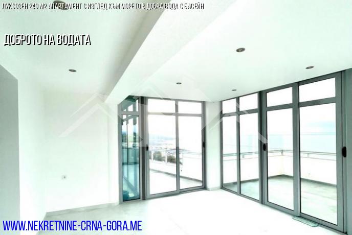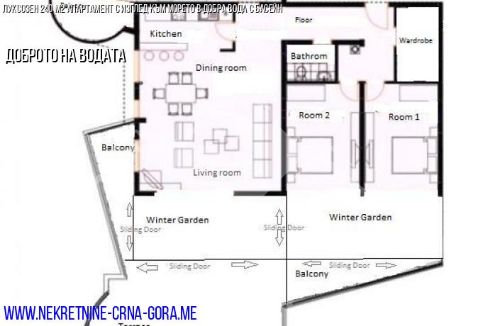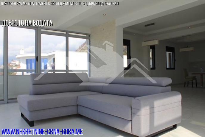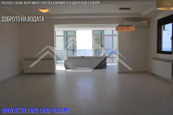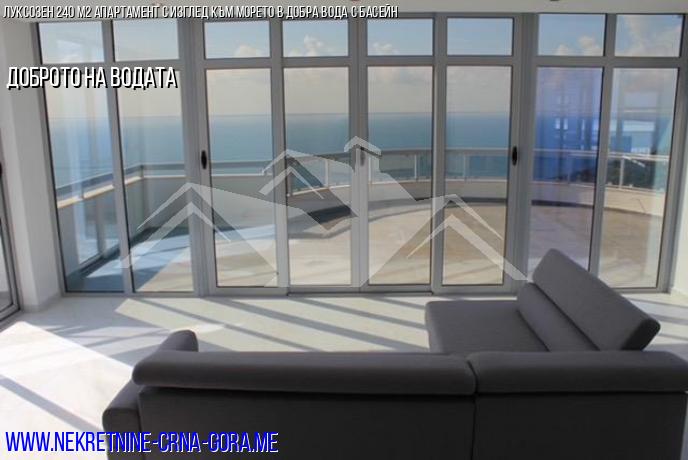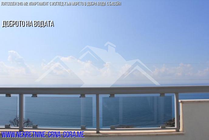 Площта на апартамента е 240 м2. Състои се от просторен хол, 3 спални, 2 бани, гардеробна, голяма панорамна тераса с изглед към морето.