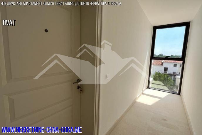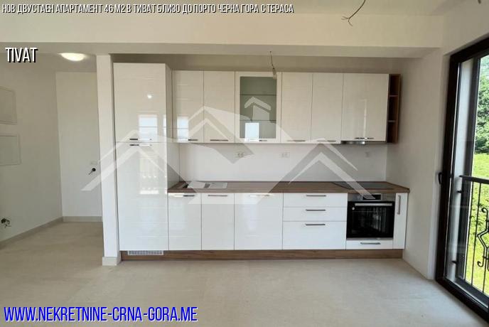 В град Тиват, област Подкук, в нова сграда се продава апартамент с 1 спалня + съблекалня, 46 м2.