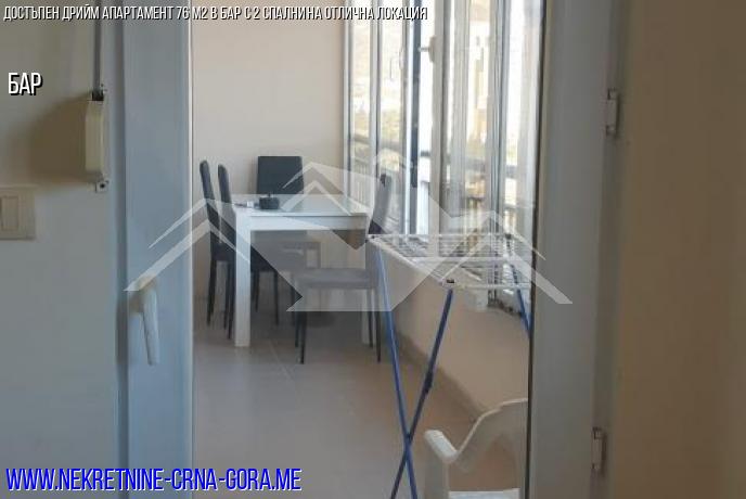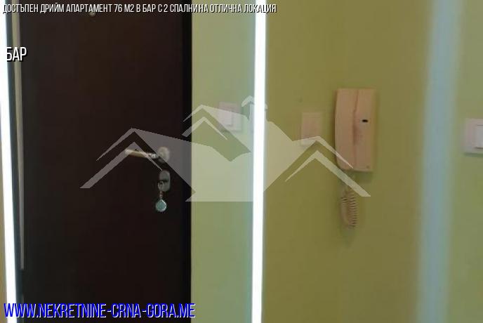 Продава се голям просторен апартамент от 76 м2 с 2 спални в град Бар в качествен жилищен комплекс. Къщите на комплекса са построени преди 10 години. През това време жилищният комплекс се е доказал много добре.