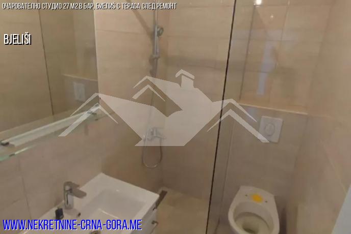 Студиото е след ремонт. Площта на студиото е 27 м2 с тераса 5 м2.