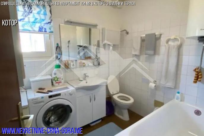 За продажба се предлага голям слънчев апартамент в Котор с 3 спални, едната с изглед към залива
