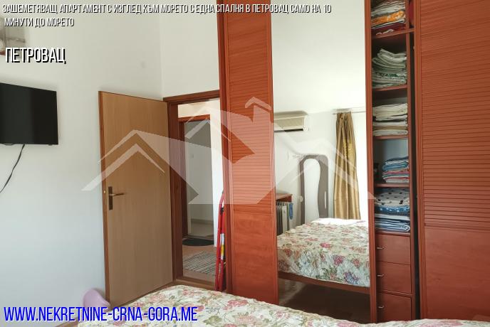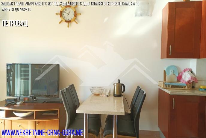 В Петровац се продава апартамент 37м2 с една спалня и хол с изглед към морето. Намира се на 4-ти етаж в жилищна сграда.