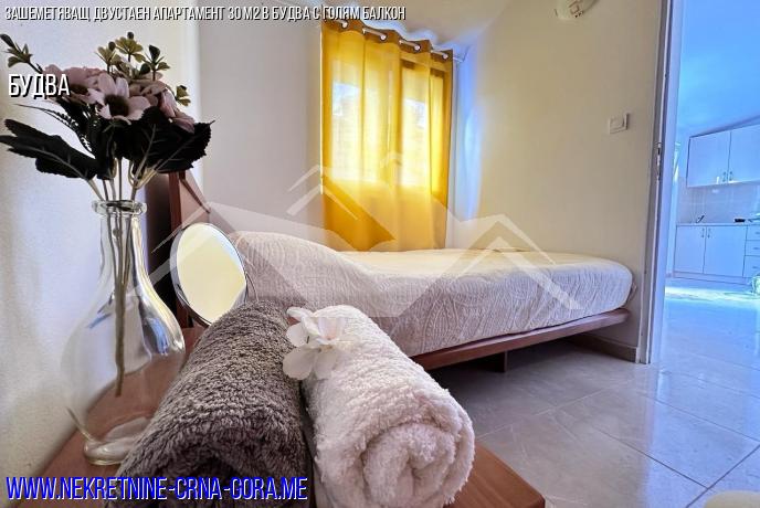 Апартаментът е с обща площ от 30 квадратни метра с една просторна спалня и стилен модерен ремонт.