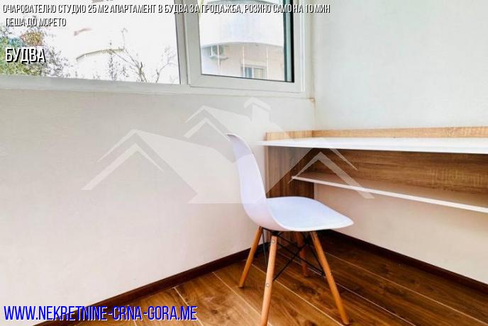 Площта на апартамента е 25 м2. Апартаментът разполага с голям хол-студио, баня и остъклен балкон.