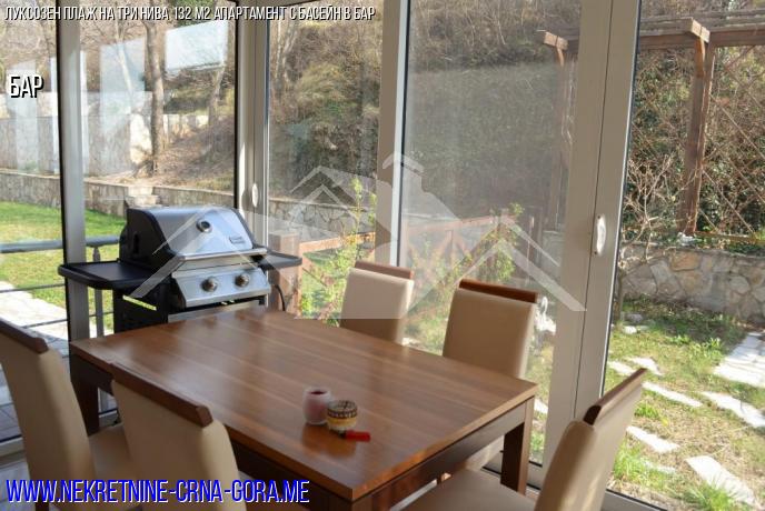 Апартаментът е в непосредствена близост до парцел от 220 м2 на нивото на втория етаж и е хармонично продължение на кухнята и терасата. Има допълнително помещение под формата на гараж за две коли.