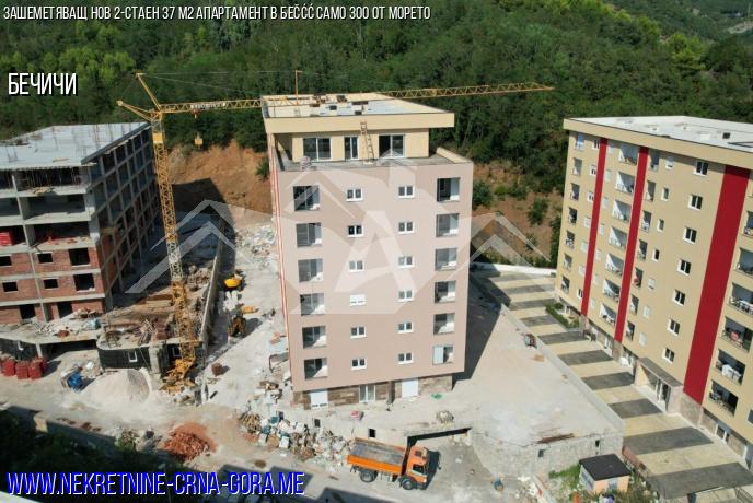 Продава се нов двустаен апартамент от 37 м2 с изглед от години в нова къща в Бечичи-без данък 3% От строителя