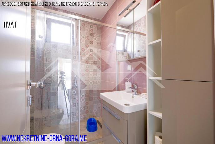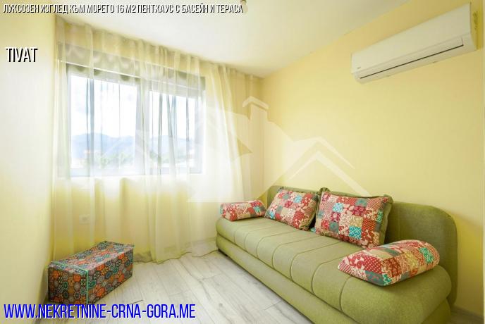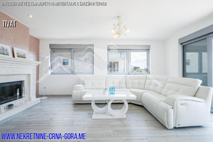 Пентхаусът се състои от просторна всекидневна с красива камина и кухня с трапезария, 3 спални, 2 Бани, 1 килер и голяма тераса с панорамна гледка към града и морето. Всекидневната е оборудвана с италиански мебели и полилеи от италианско и муранско стъкло. Това е единственият апартамент на приземния етаж, така че ако желаете, можете да използвате и стълбището и да го оградите.