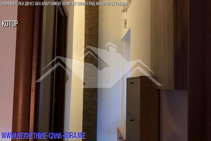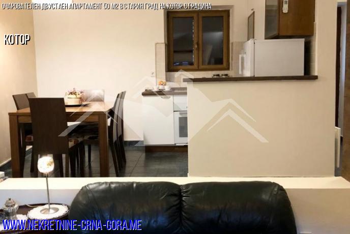 Площ на апартамента: 50 м2. Просторен двустаен апартамент на трети етаж в автентична сграда в центъра на Стария град Котор. Идеален за отдаване под наем благодарение на високия туристически поток през цялата година. Средната наемна цена е 150-200 евро на ден.
