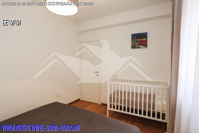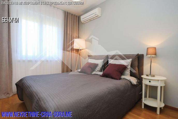Продава се Апартамент с две спални в курортния град Бечичи с мебели и уреди на 2 км от град Будва в луксозен жилищен комплекс.