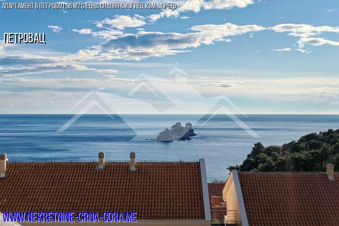 Продава се двустаен апартамент с изглед към морето в Петровац. Плажът и плажът са на 8 минути пеша.