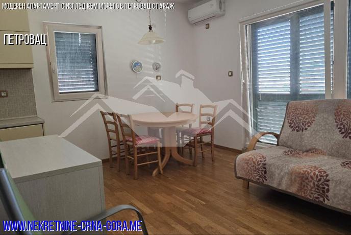 Петровац, продажба на апартамент в модерна къща, 100м до плажа, 50м До супермаркет 0, до пазар 100м, площ 46м2, 3/4 в къща без асансьор 1 спалня, хол-кухня, коридор, просторна баня, тераса с изглед към морето. Апартаментът е обзаведен и оборудван с необходимата техника. Цената включва паркинг, в гаража под къщата на листа с недвижими имоти.