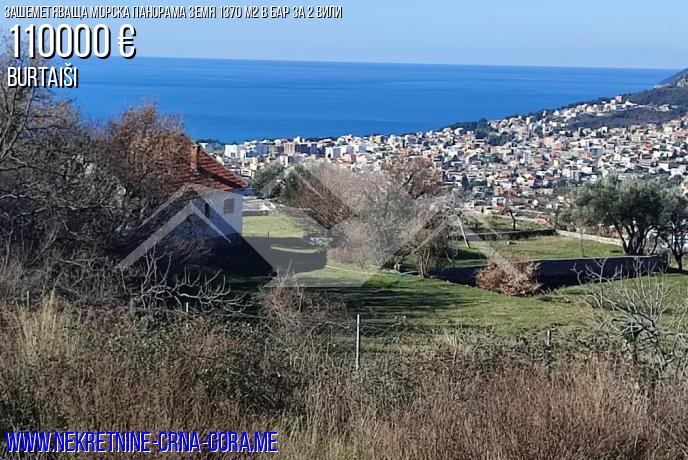 Почти равен парцел земя над бара с непокрита панорамна гледка към бара и морето.