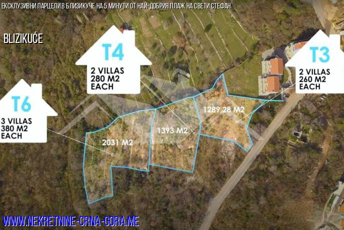 Парцел в елитното село близо до полуостров Свети Стефан на 5 минути от най-добрия плаж на Черна Гора