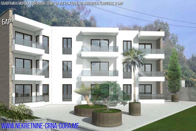 Продава се парцел с проект в бар за изграждане на жилищна сграда с изглед към морето и подземен паркинг.