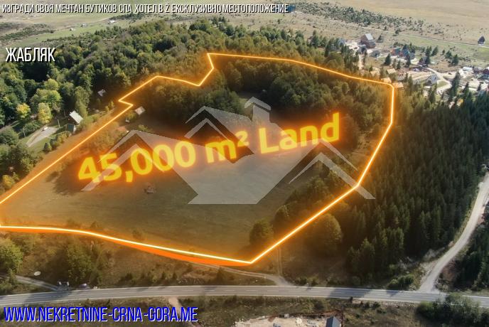 Продава се урбанизиран Парцел в Жабляк с площ 8.700 м2 м2 на територията на елитно селище с.С. с разрешение за строеж на голям туристически обект - бутиков хотел (30-50 стаи) с акцент върху простор, тишина и панорамни гледки. Заведение. Общо-комплекс. Център.