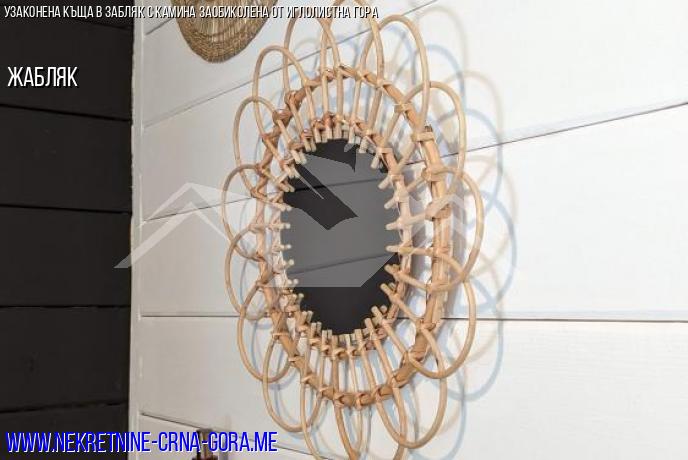 Вътрешната украса на къщата е изработена от дърво, което й придава особен чар и уют. В комбинация с камината се създава атмосфера на топлина и романтика, на която можете да се насладите по всяко време на годината. Къщата вече е оборудвана с всички необходими домакински уреди и благодарение на удобното си местоположение е готова както за постоянно пребиваване, така и за отдаване под наем.