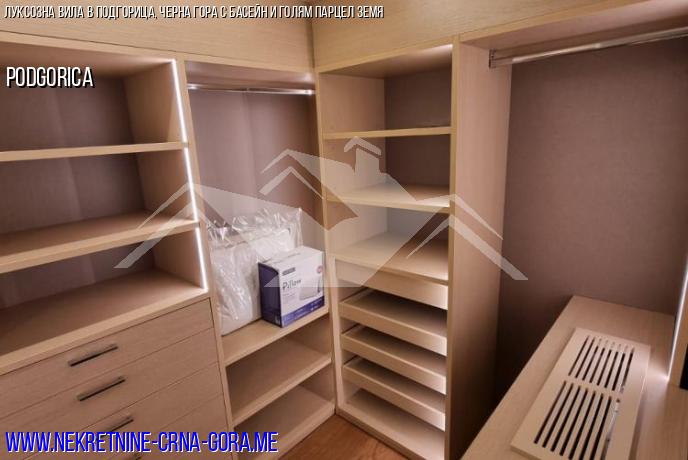 Втори етаж-три спални със самостоятелни бани и гардероби, от които основната е около 50 м2 с два гардероба (мъжки и женски). На приземния етаж има две големи тераси.