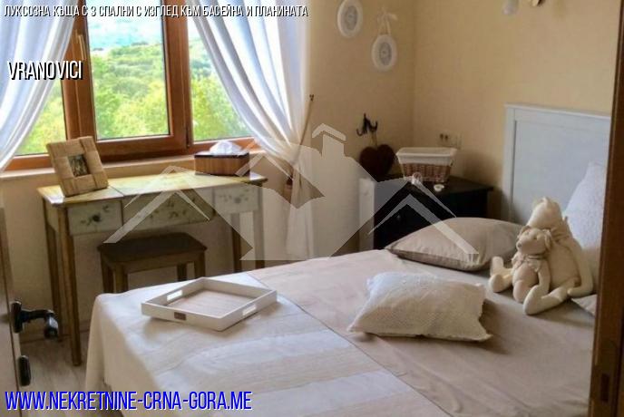 Тази красива триетажна градска къща се намира в спокойното село Врановичи, близо до Бигов. Къщата се състои от дневна с отворен план с кухня и трапезария, три спални, три бани. Красива тераса с изглед към зеленината и планината.
