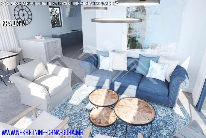 Мини хотелът се намира в село Крашичи, Опщина Тиват. 1-ва линия от морето със собствен кей и паркинг.