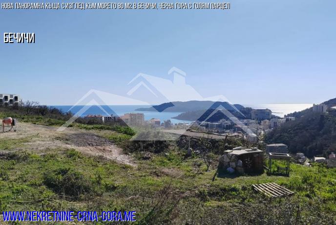 Над Бечичи се продава парцел с недовършена къща с красива панорамна гледка.