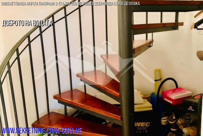 Състои се от първи етаж + 2 горни етажа, както и вътрешно и външно стълбище.