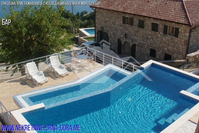 Продава се триетажна вила с басейн в град Бар. Вилата е с площ от 200 м2 и парцел от 800 м2. Имотът включва гараж и паркомясто.