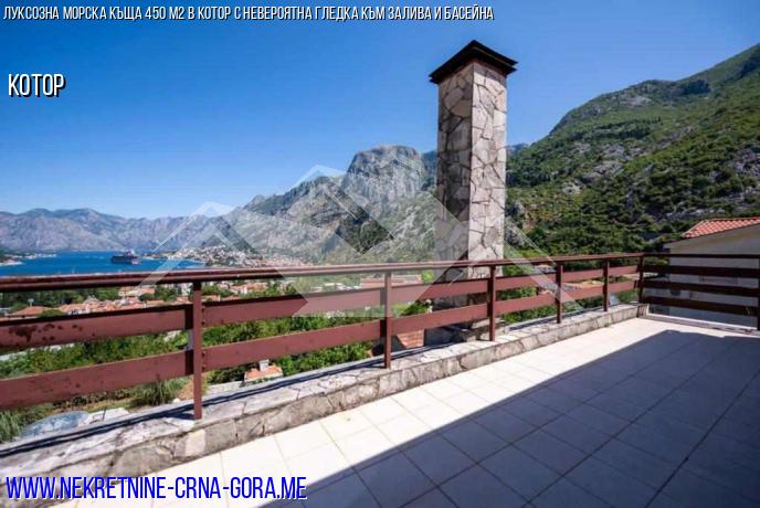 Къща с голям двор, пристройка и басейн в най-красивата част на град Котор в квартал Мащабари с прекрасна гледка към залива.