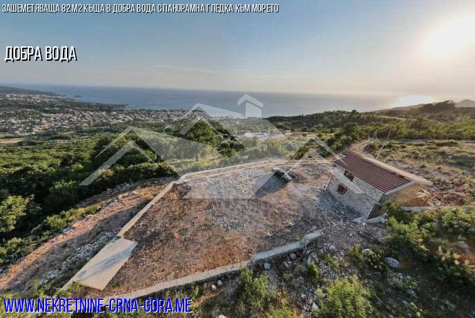 Продава се нова двуетажна каменна къща в Добра Вода с панорамна гледка към морето и планината.