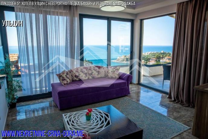 Ексклузивен 5 звезден бутиков хотел в Улцин с невероятна гледка към стария град в Улцин, Черна гора за продажба. Общо шест етажа и огромна слънчева тераса.