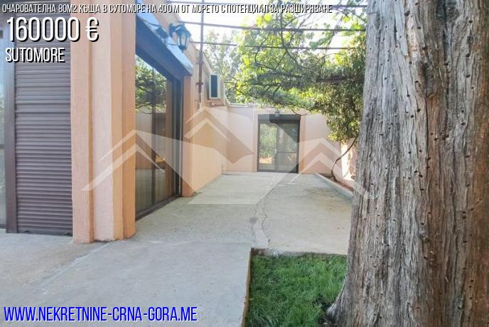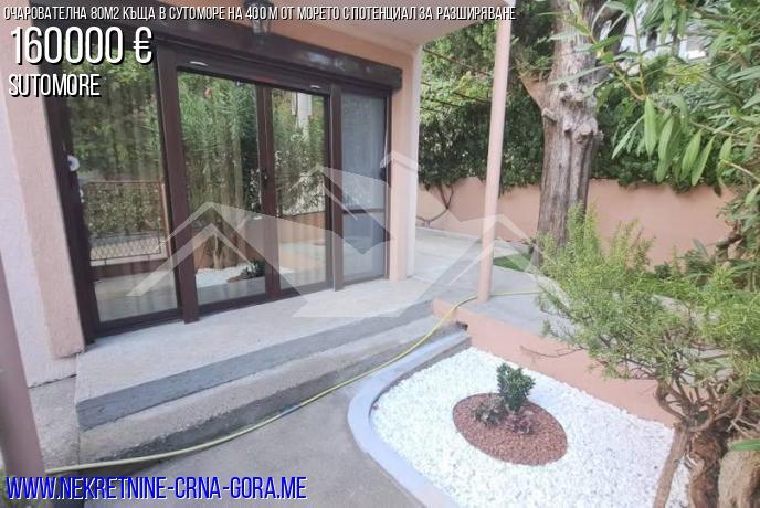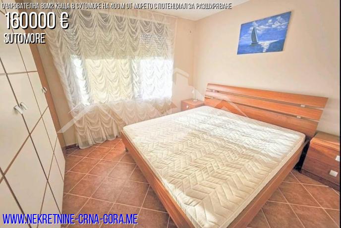 В Сутомор се продава къща 80 22 с 3 спални. Площта на парцела е 402 м2.