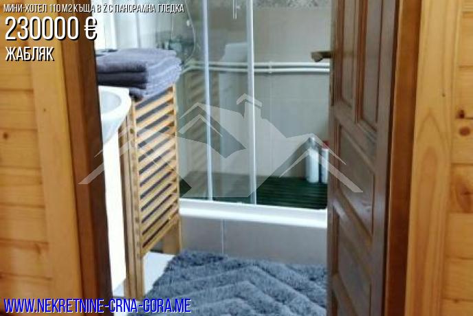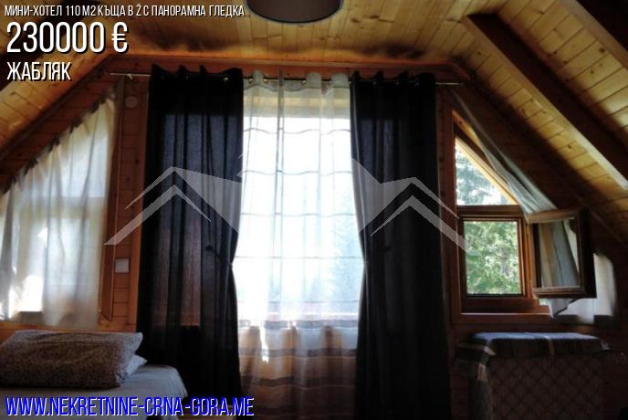 Уникална къща в квартал Ускорчи, Жабляк, където всяка сутрин започва с гледка към иглолистните гори и величествените планински върхове на Дурмитор. Парцелът от 800 м2 се състои от две равни части, заобиколени от непокътната природа на Националния парк на ЮНЕСКО, като цялата необходима инфраструктура на Жабляк е на кратко разстояние с кола. Тази рядка комбинация от абсолютна неприкосновеност на личния живот и удобна достъпност е идеалното място за тези, които търсят убежище от суматохата на града, но не са готови да жертват удобствата на цивилизацията. Просторна тераса обгражда къщата, което ви позволява да се насладите на 360-градусова панорама по всяко време на годината: през зимата - заснежени върхове и тишина, през лятото - изумрудена зеленина и чист планински въздух.
