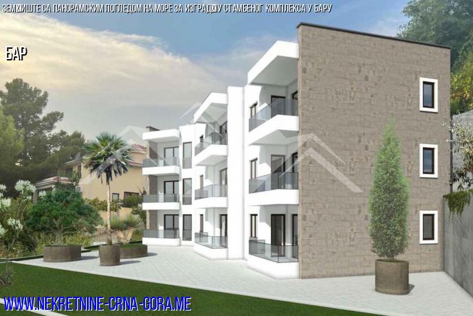 Продаје се земљиште са пројектом у бару за изградњу стамбене зграде са погледом на море и подземним паркингом.