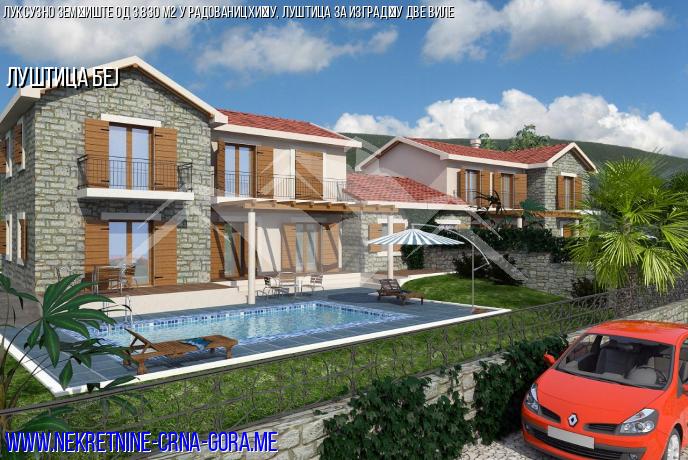 Продаје се ексклузивни део за продају 3830 м2 са дозволом за изградњу 2 виле по 157 м2 свака са започетим радовима.